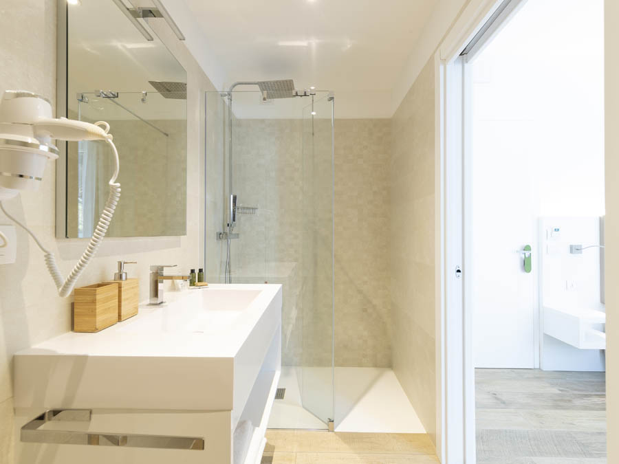 The room has a private bathroom with shower and hairdryer.