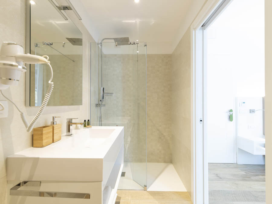The room has a private bathroom with shower and hairdryer.